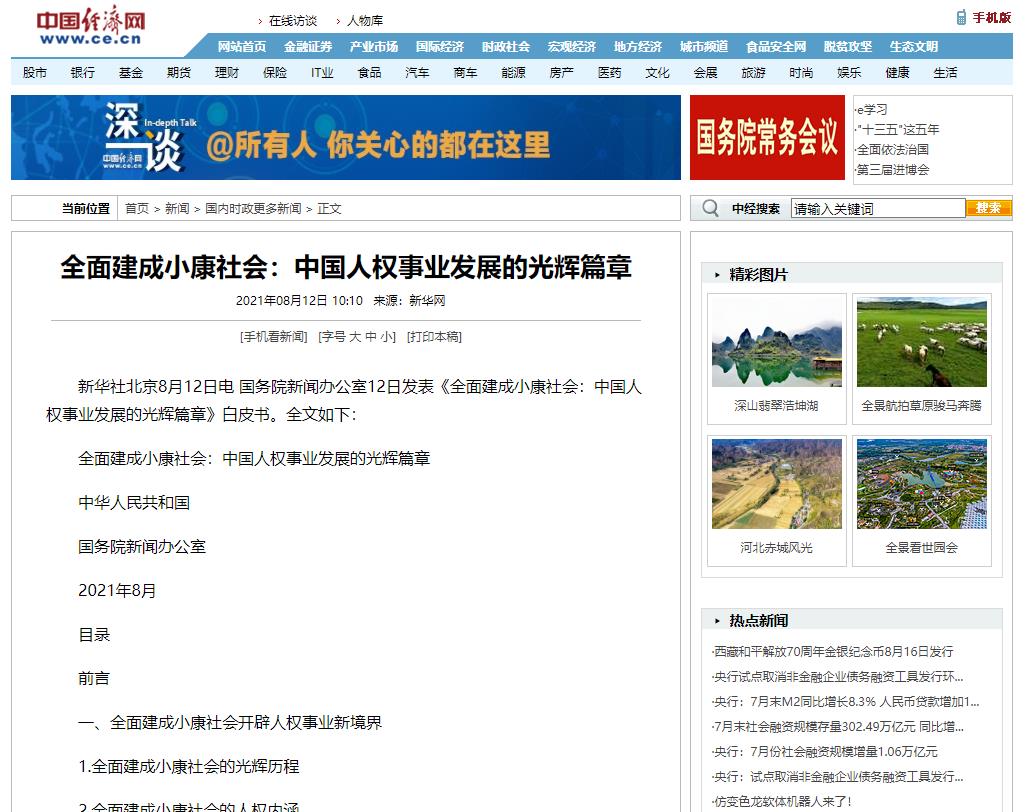 查看詳細(xì)全面建成小康社會(huì):中國(guó)人權(quán)事業(yè)發(fā)展的光輝篇章2021年08月12日 10:10 …